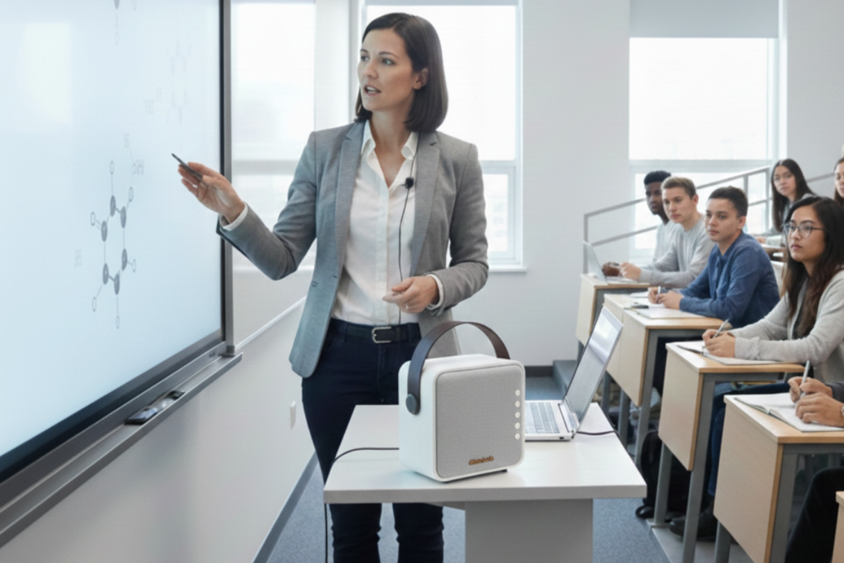 內建電池與麥克風,適合導覽、簡報與行動活動場合。